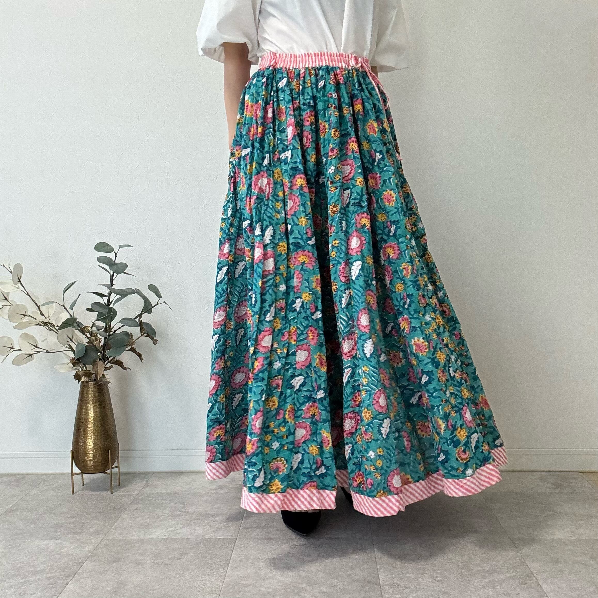 インドの職人さんが一枚一枚、丁寧な手仕事から生まれたブロックプリントスカート
