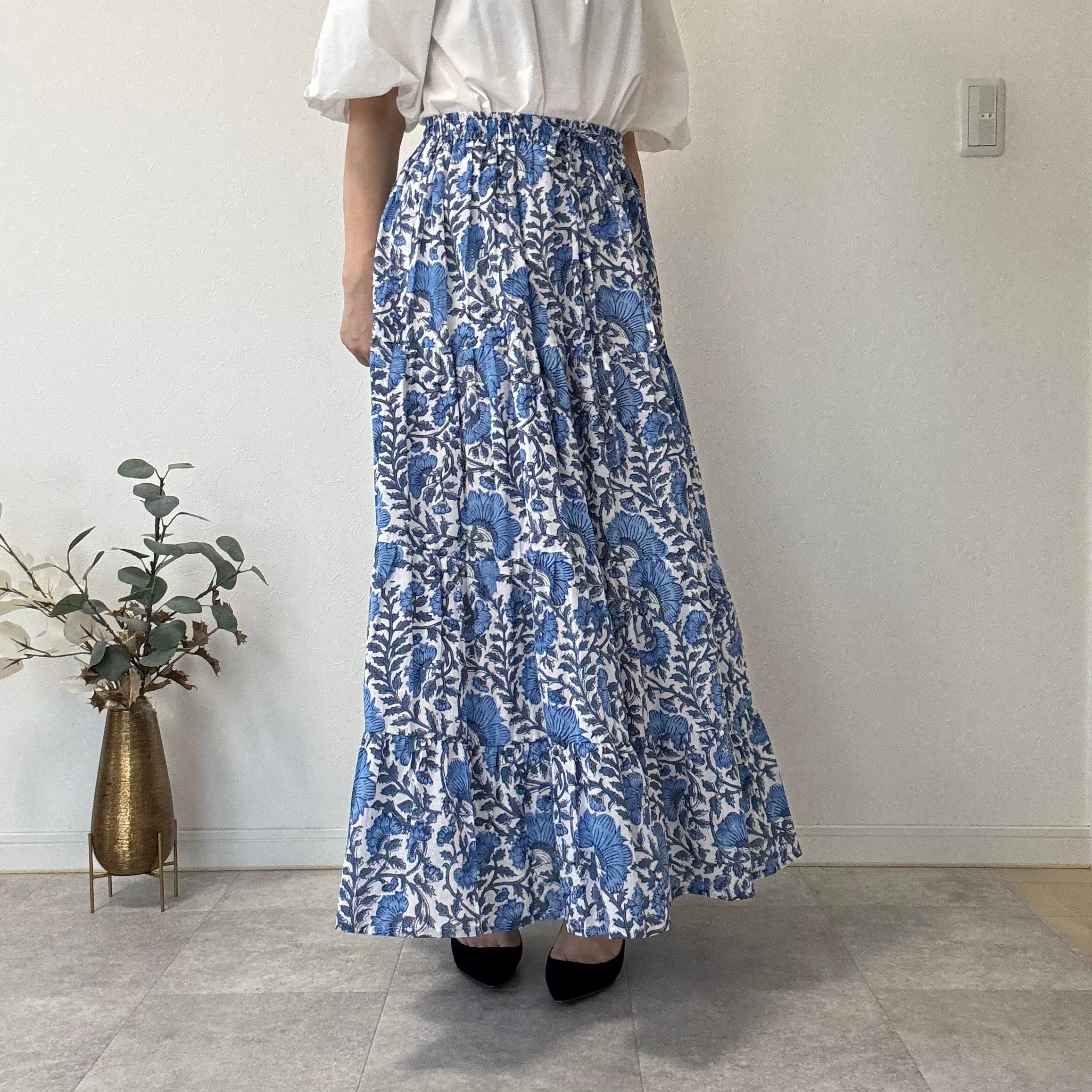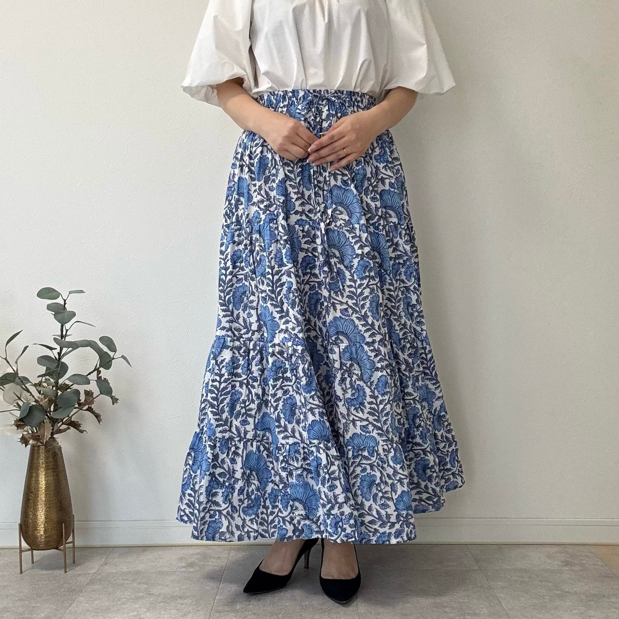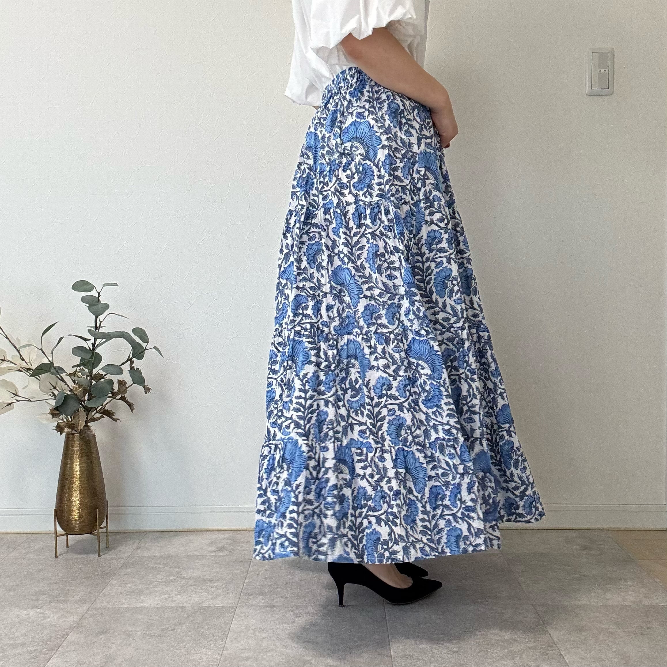 インドの職人さんが一枚一枚、丁寧な手仕事から生まれたブロックプリントスカート