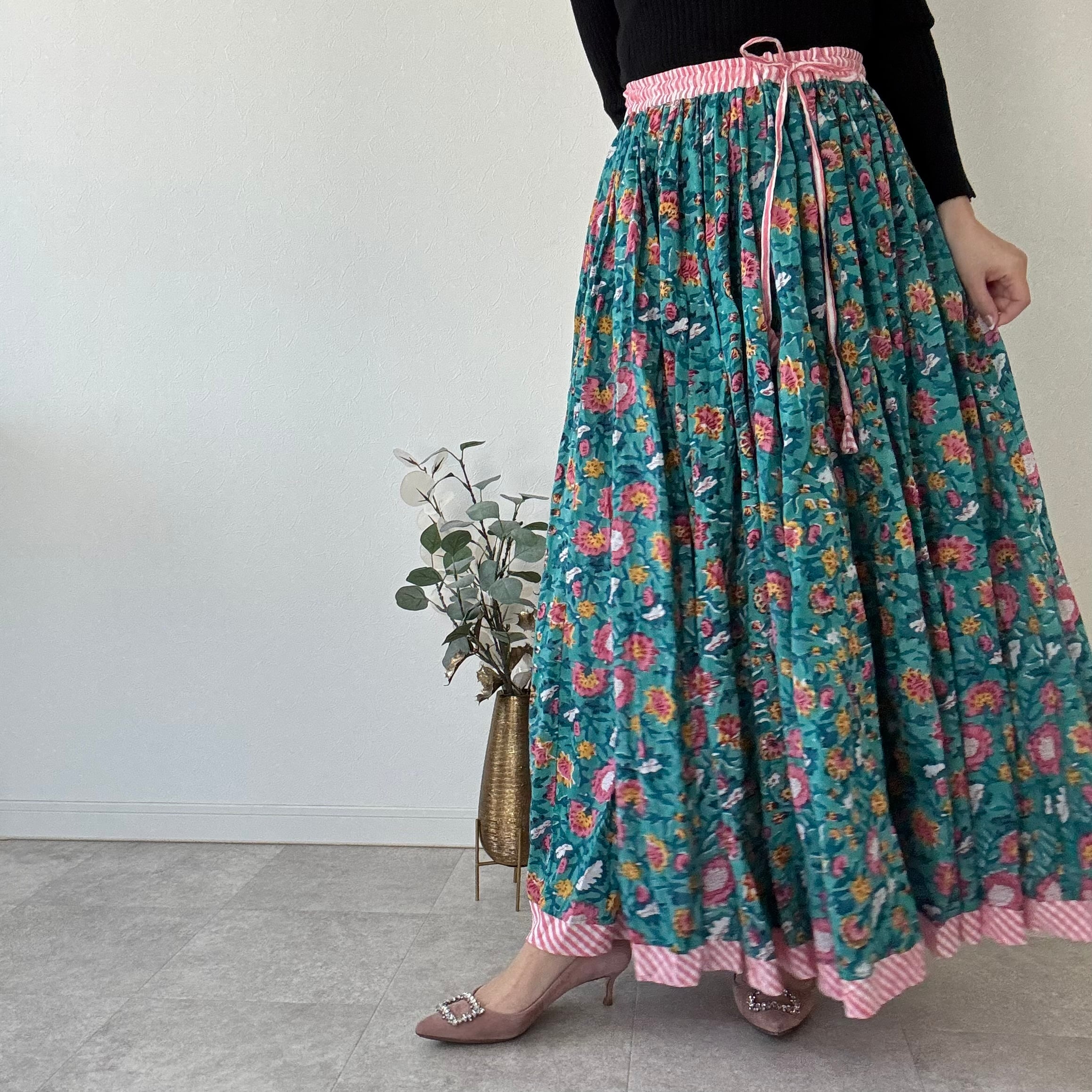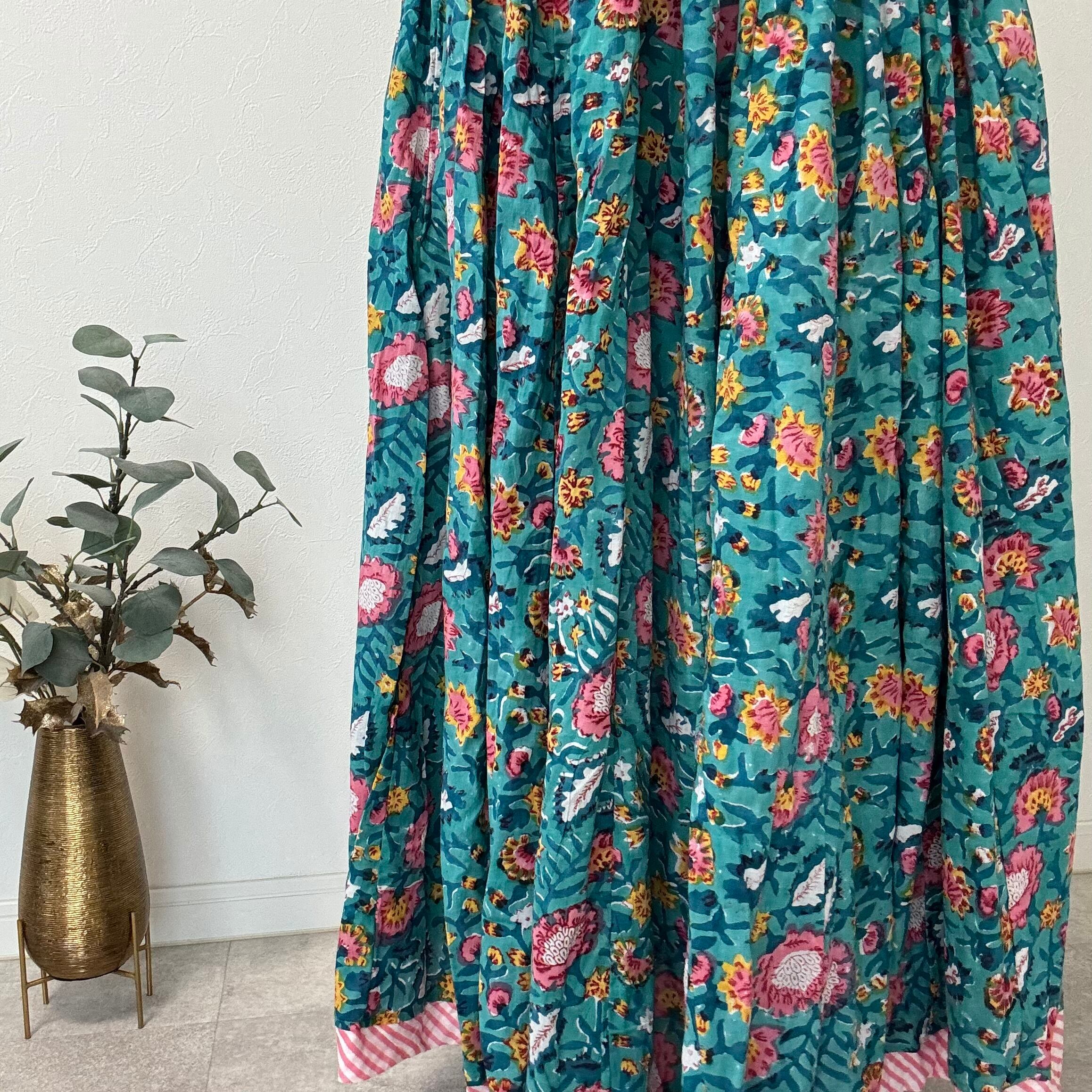 インドの職人さんが一枚一枚、丁寧な手仕事から生まれたブロックプリントスカート