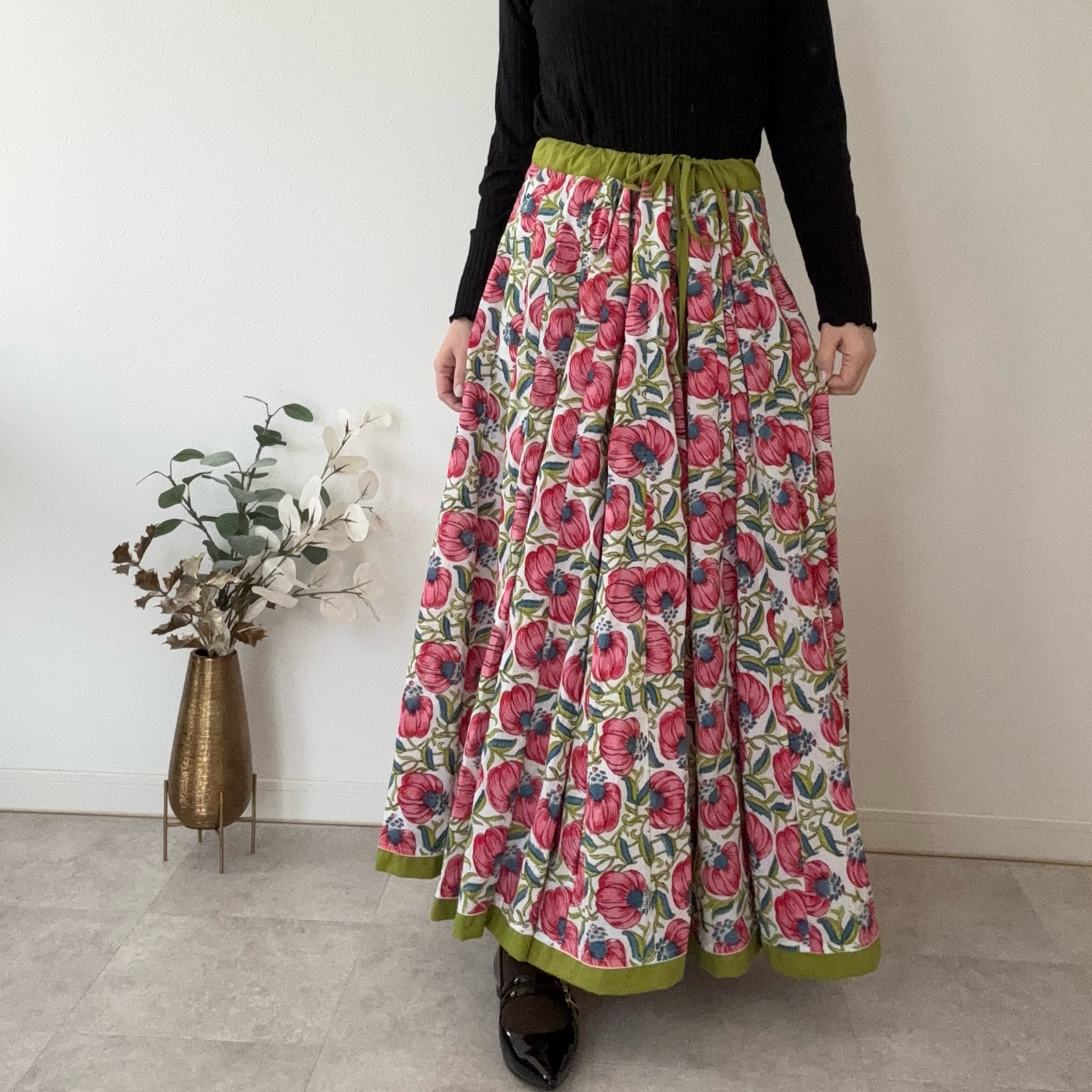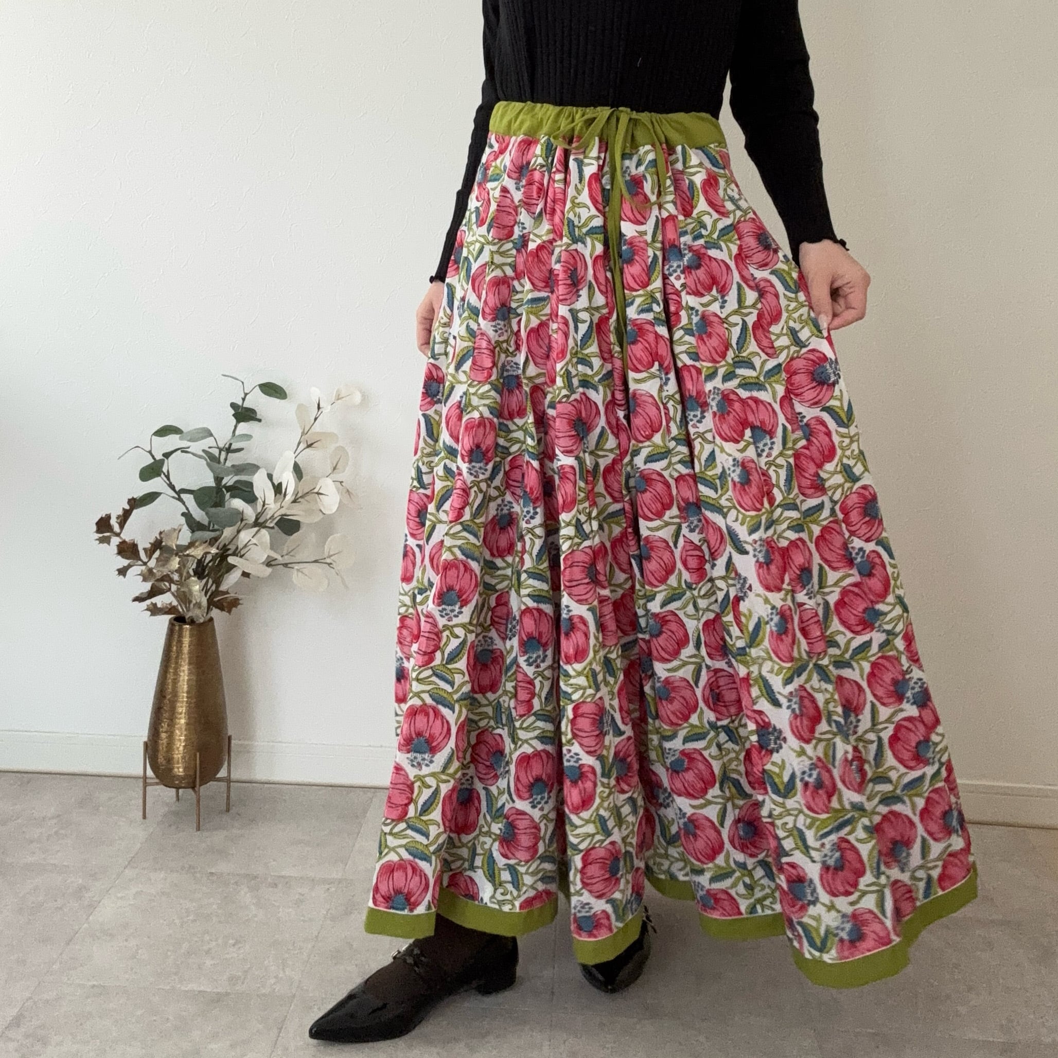 インドの職人さんが一枚一枚、丁寧な手仕事から生まれたブロックプリントスカート