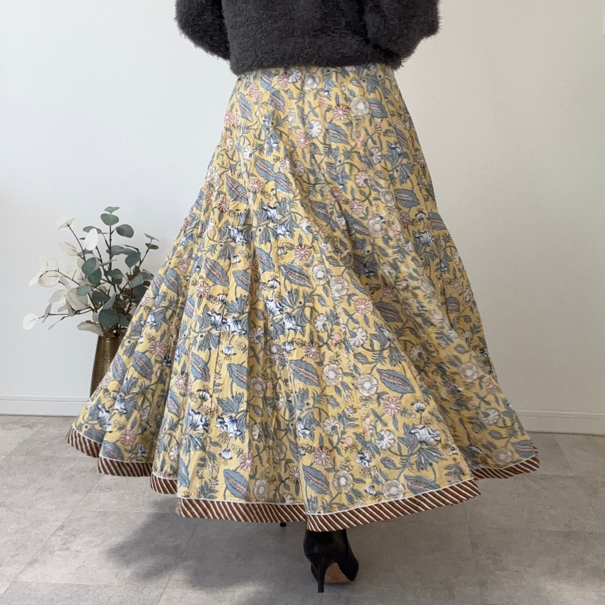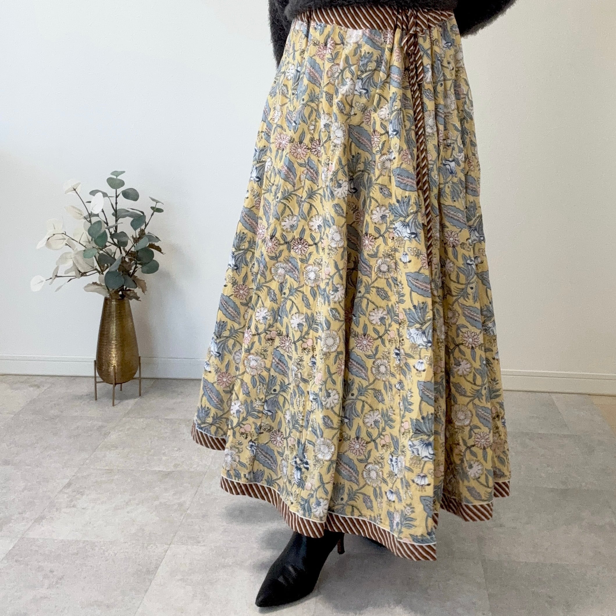 インドの職人さんが一枚一枚、丁寧な手仕事から生まれたブロックプリントスカート