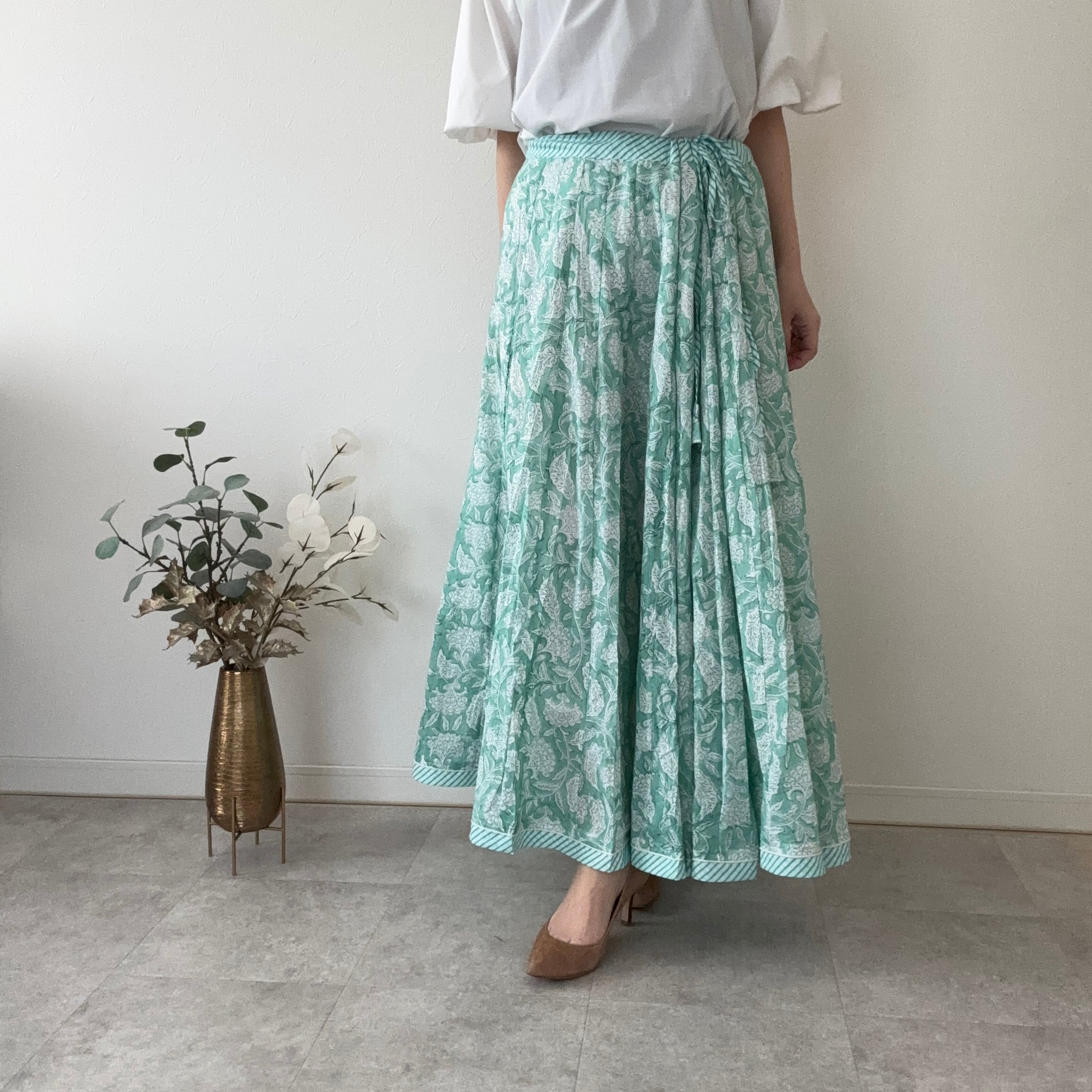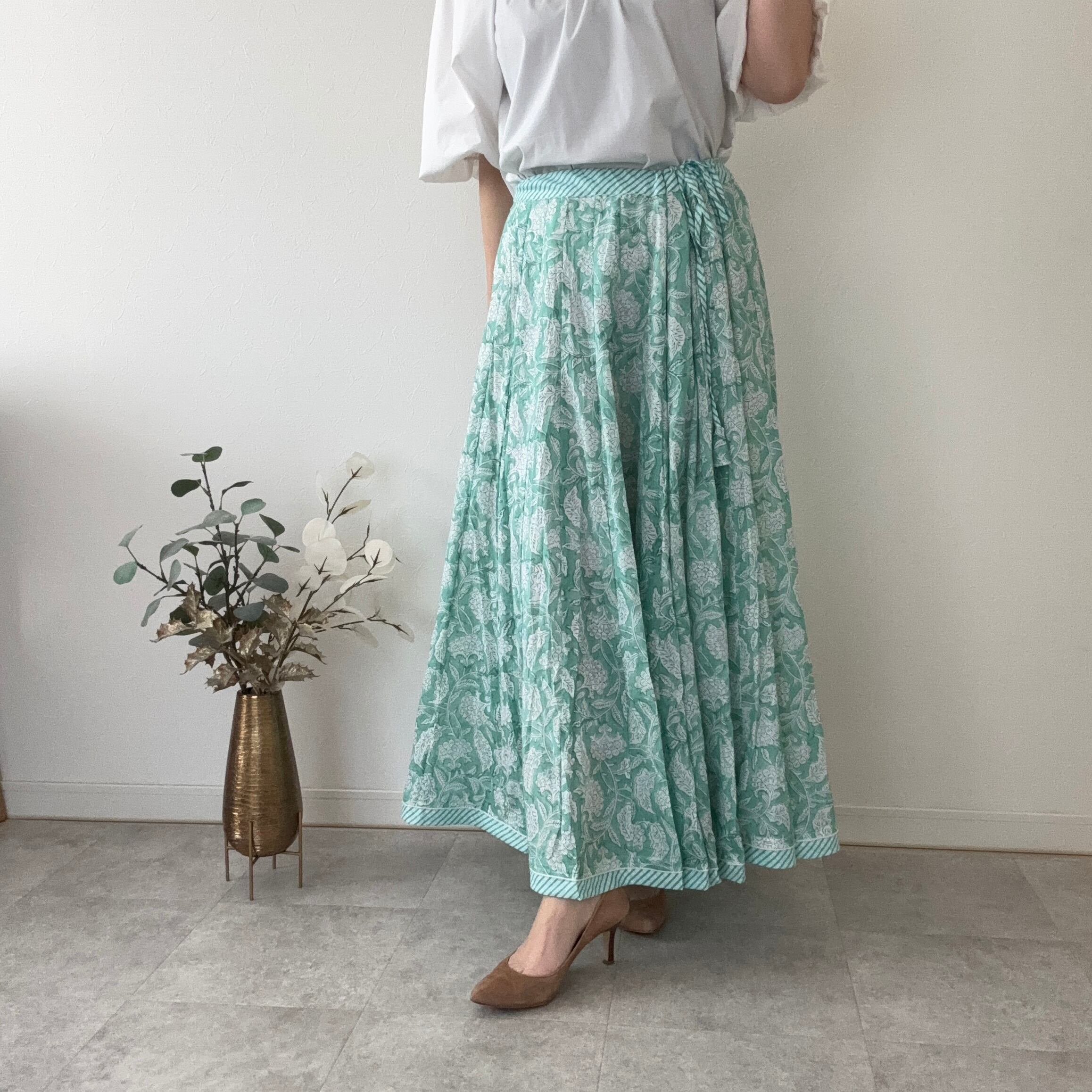インドの職人さんが一枚一枚、丁寧な手仕事から生まれたブロックプリントスカート