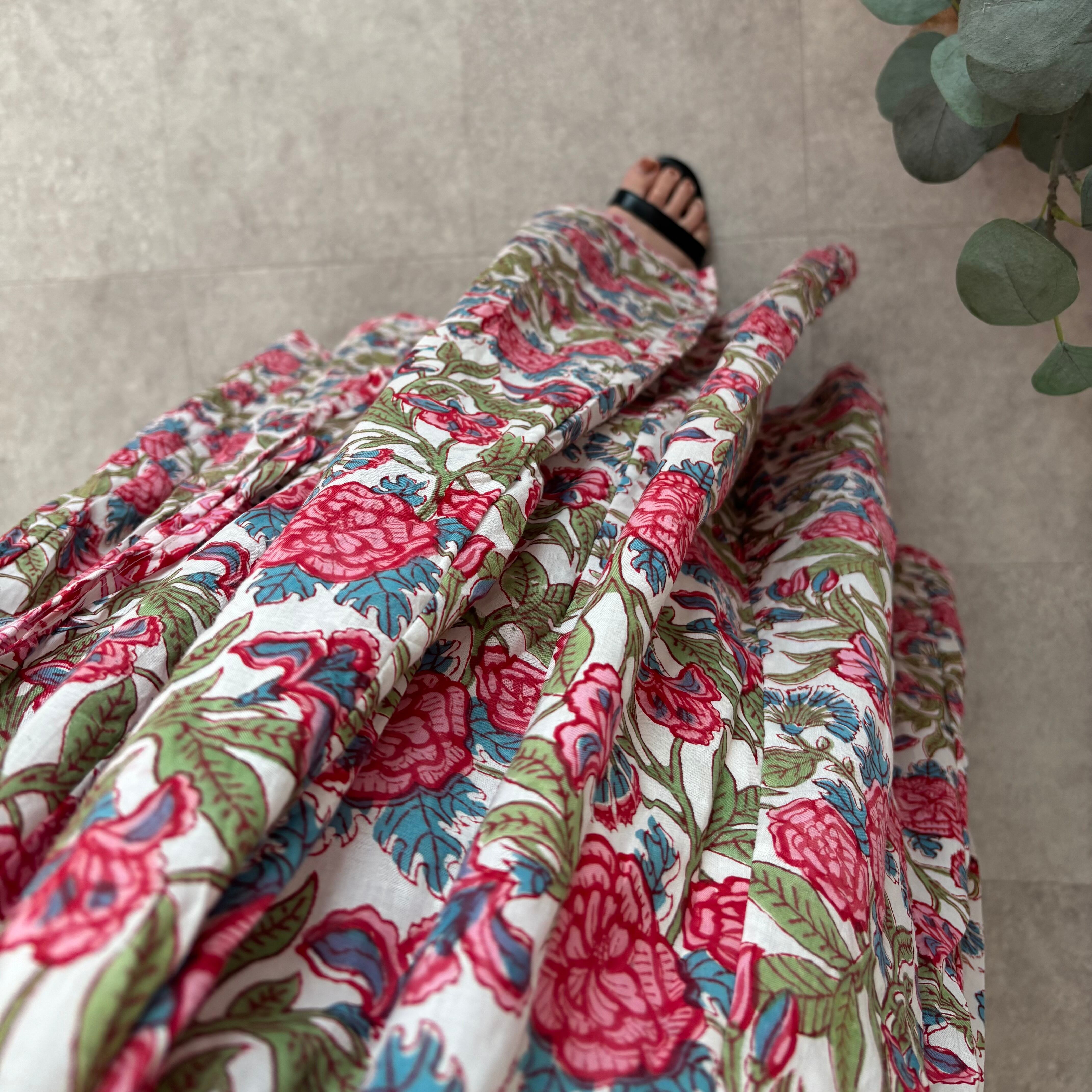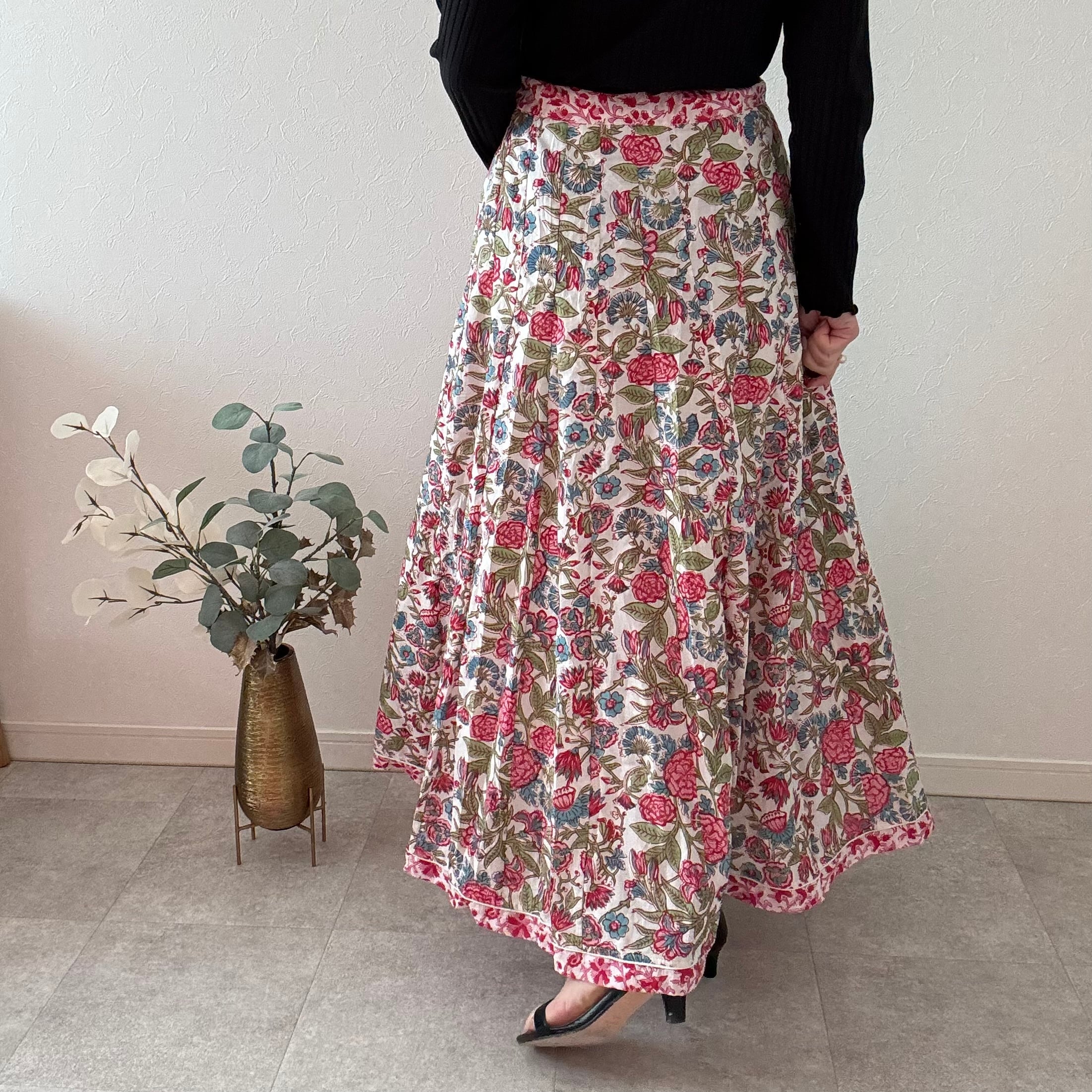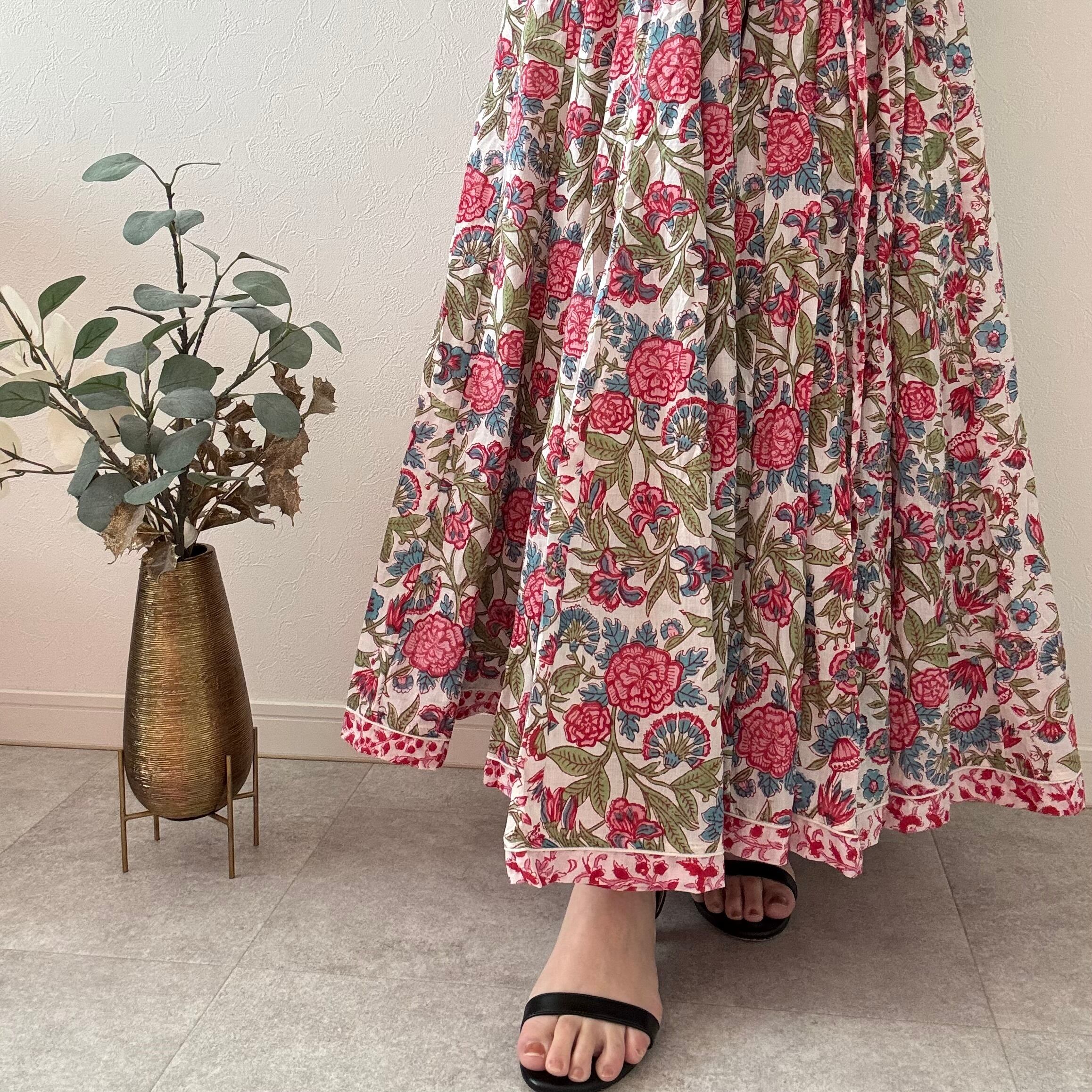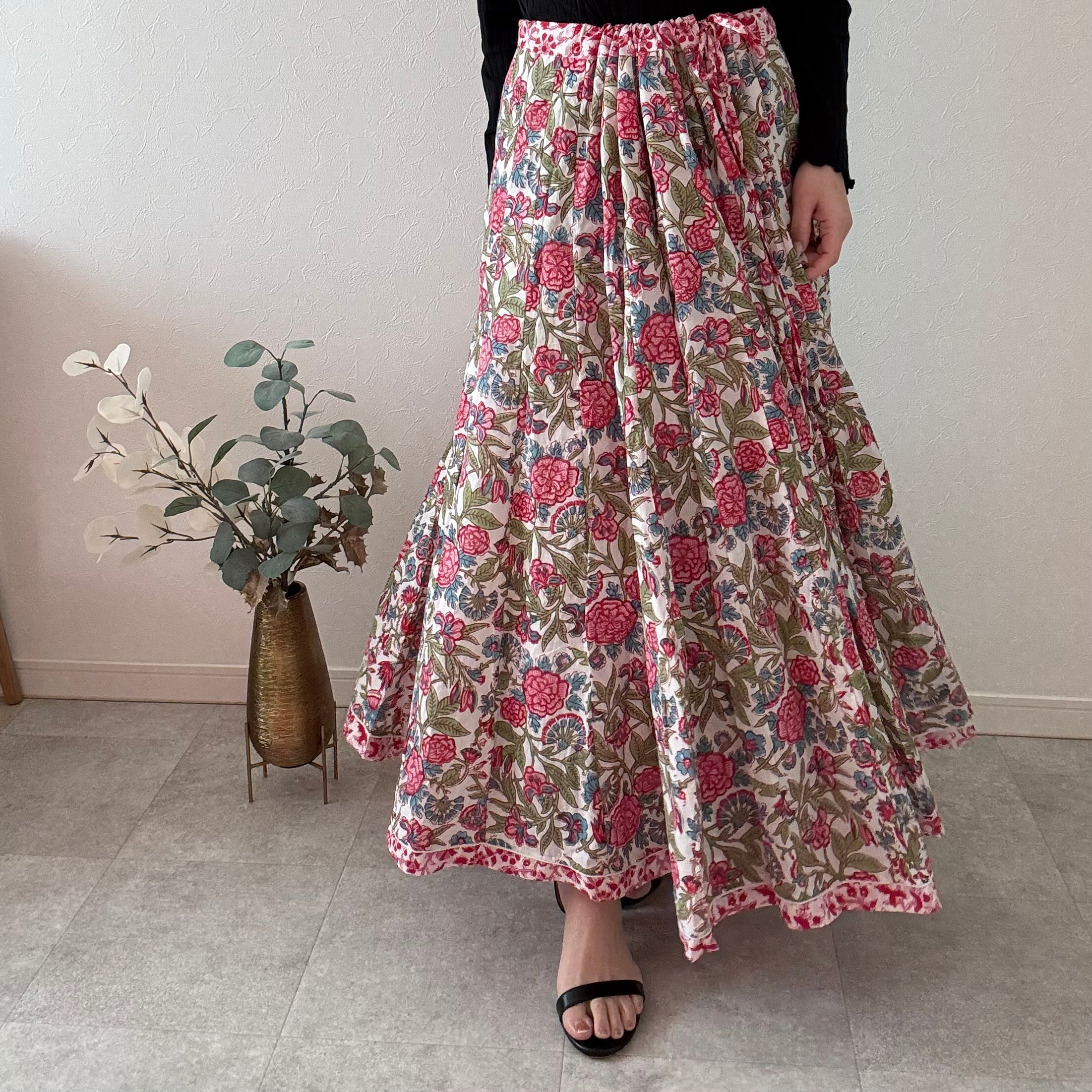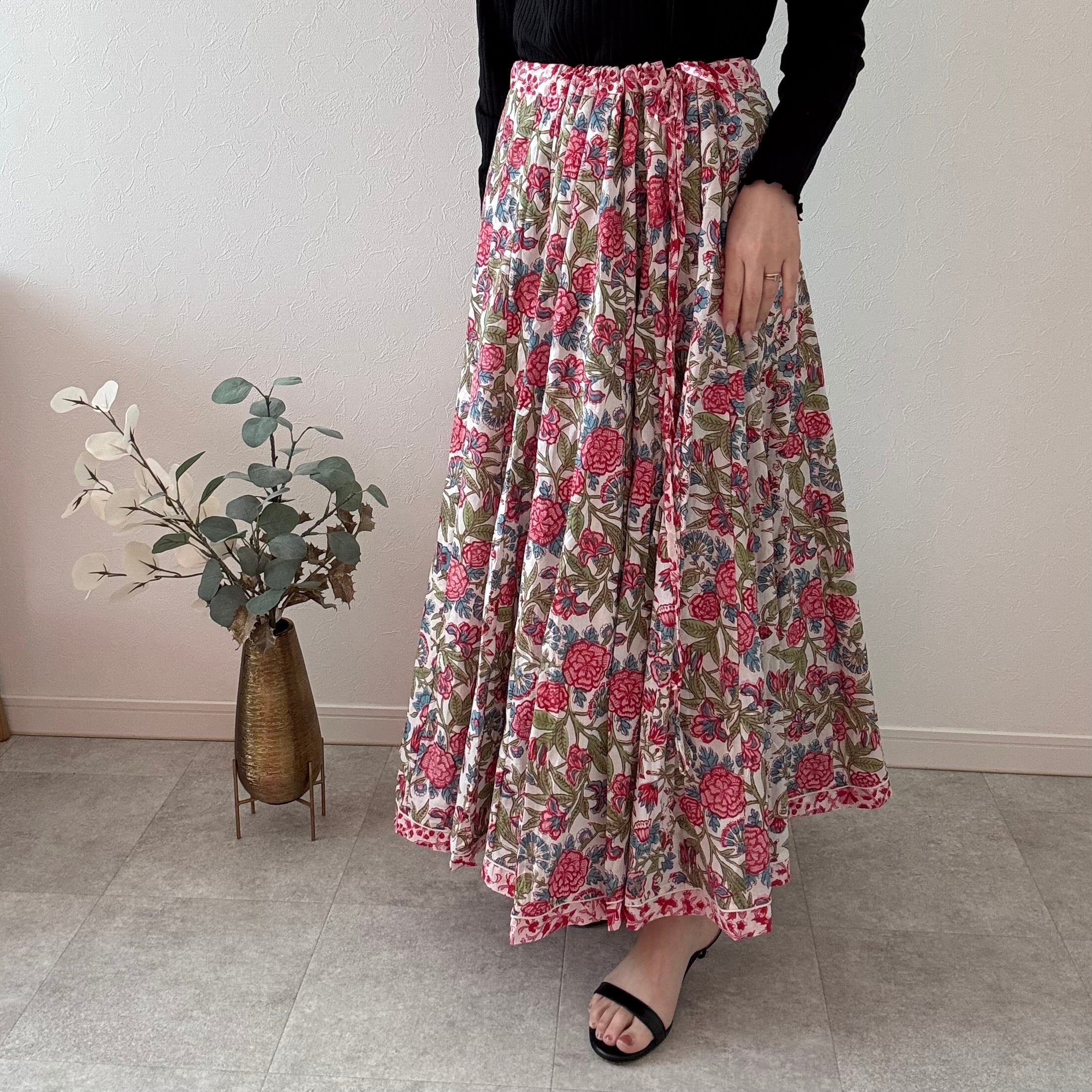 インドの職人さんが一枚一枚、丁寧な手仕事から生まれたブロックプリントスカート